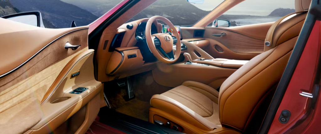 With a long 2,870 mm wheelbase, compact 920 mm front and 970 mm rear overhangs and a notably low hood, LC’s athletic profile is set off by a sweeping roofline, sensual curves, and wind-cutting silhouette. And set further apart by a series of inspired colours, including: Ultrasonic Blue Mica, Cloudburst Grey, and Iridium. LC’s interior cabin is designed for driving pleasure and luxurious comfort. The cockpit is an invitation to high-spirited driving.