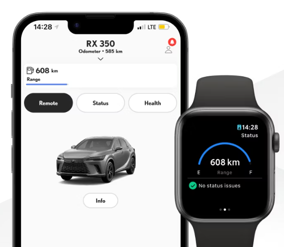 Unparalleled convenience and connectivity are at your fingertips in the 2026 RX. The available 14” touchscreen connects you like never before thanks to the highly intuitive Lexus Interface system. Standard features such as: Safety Connect (5-year minimum, 4G network dependent) 46, Service Connect (5-year minimum, 4G network dependent) 46, and Remote Connect (3-year trial)35. All models are compatible with wireless Apple CarPlayTM,41 and Android AutoTM,42 giving you easy access to your favourite apps, music, navigation and more. Powered by Google Points-of-Interest data, Cloud Navigation supports real-time traffic and map updates and integrates with Intelligent Assistant voice commands. Use natural voice commands to control a range of features with Intelligent Assistant. Dictate a message, check the weather, or find your next destination. Included with Drive Connect.Upgrade the standard 9.8” multimedia touchscreen with an available 14” display. Both offer pinch-zoom capability for easy access to Lexus Interface features. Save your radio favourites, language, map settings, Lexus app settings or even seat position with personalized user profiles. Stored in the cloud, they can go from vehicle to vehicle.